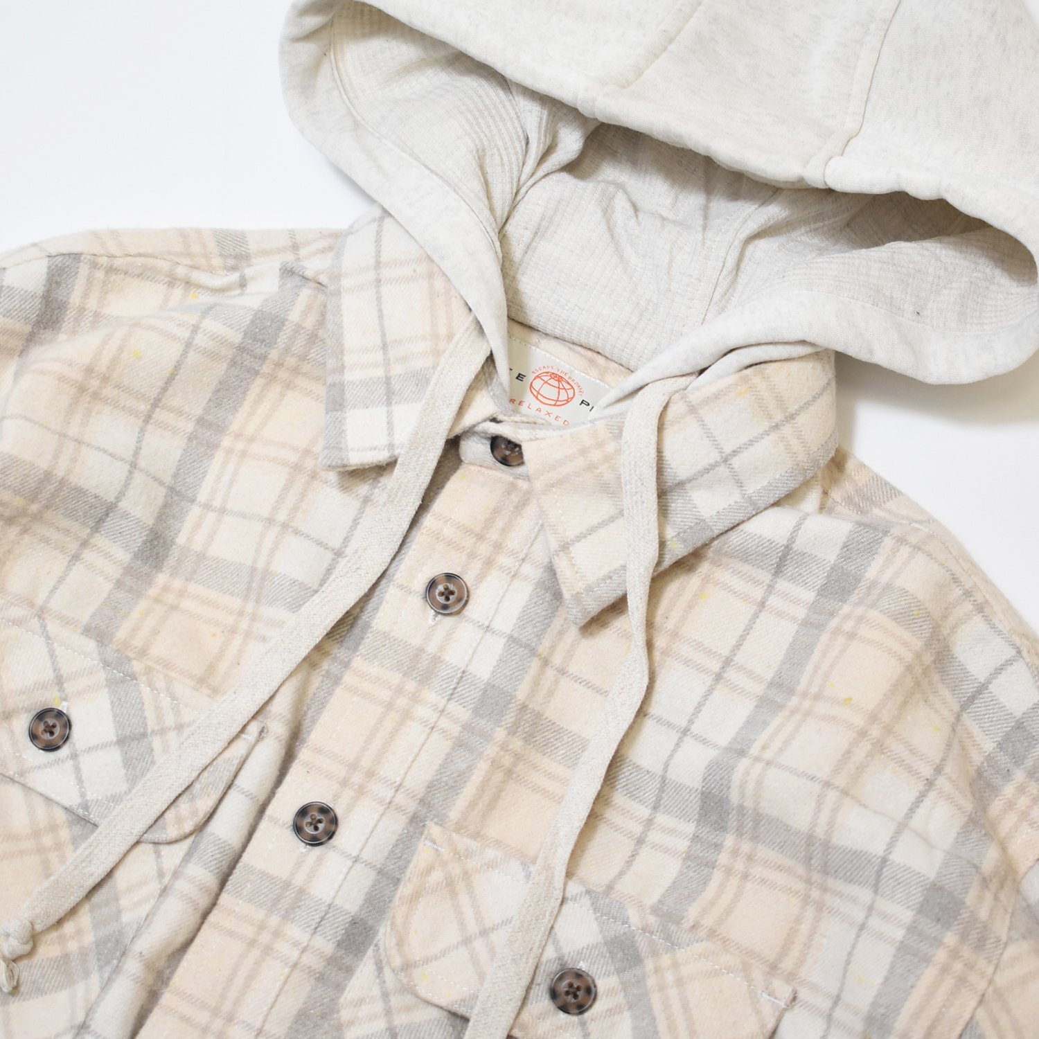 Free Planet Hooded Plaid Flannel Shirts - Natural Multi